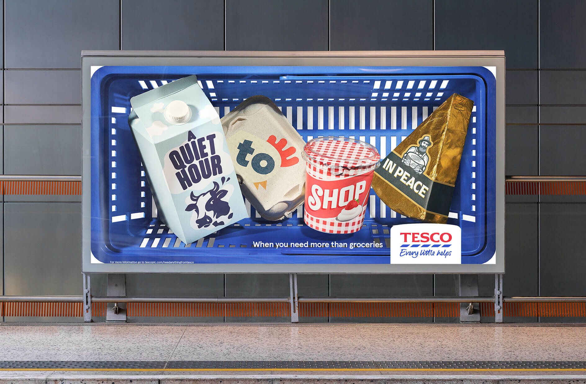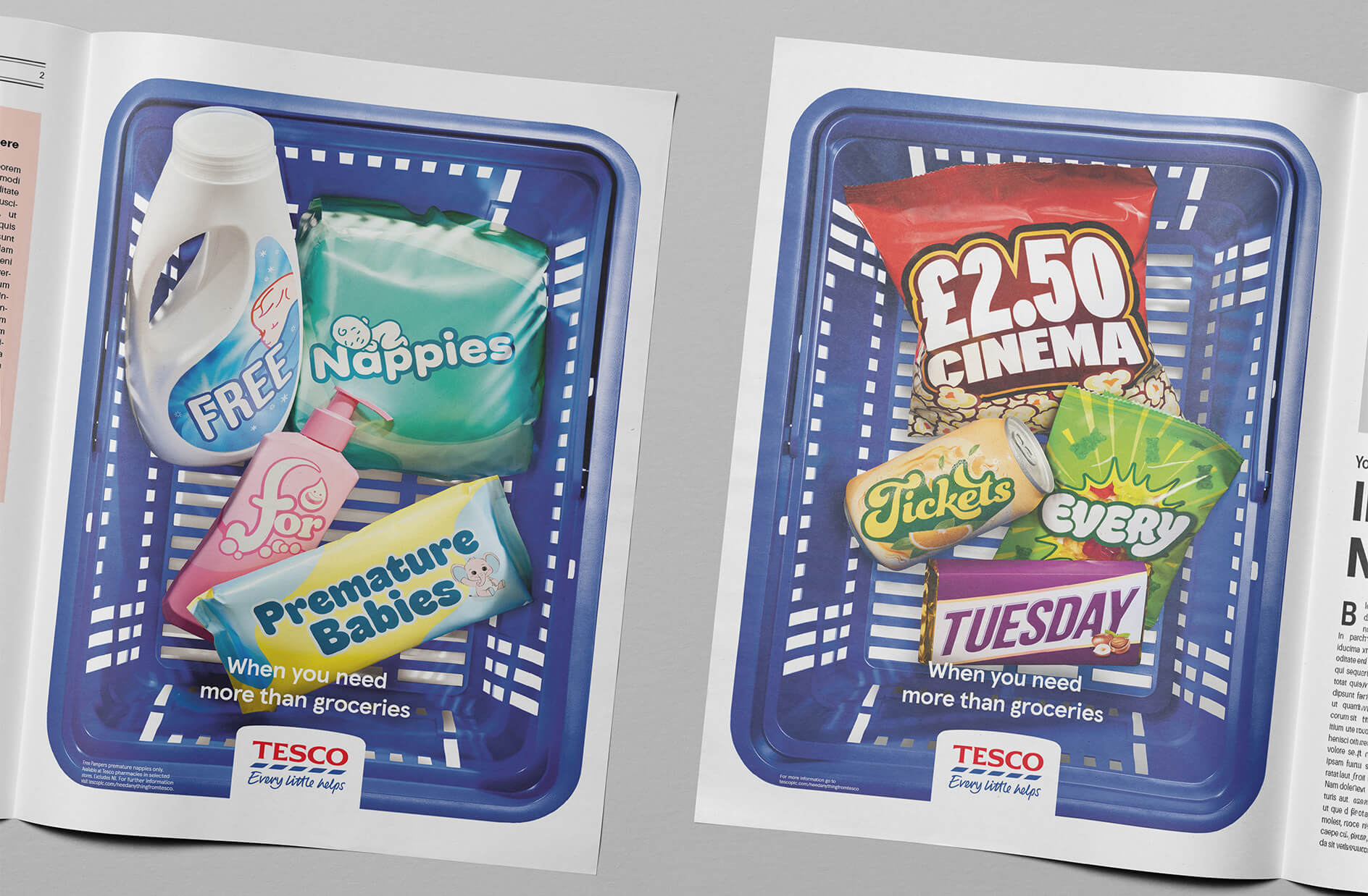 Using everyday products we made their commitments into cleverly constructed images of Tesco shopping baskets that each told a different story.