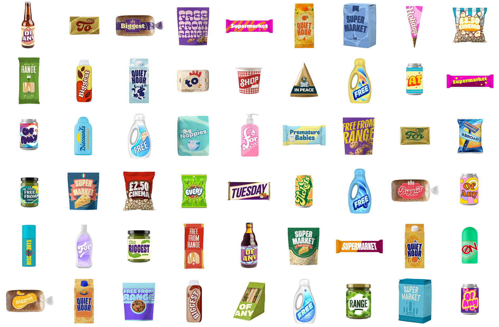 I created over 90 product variations and many combinations to get the perfect basket compositions. We then had our products manufactured and shot to appear across press ads, OOH, and social formats along side a high energy hero film.